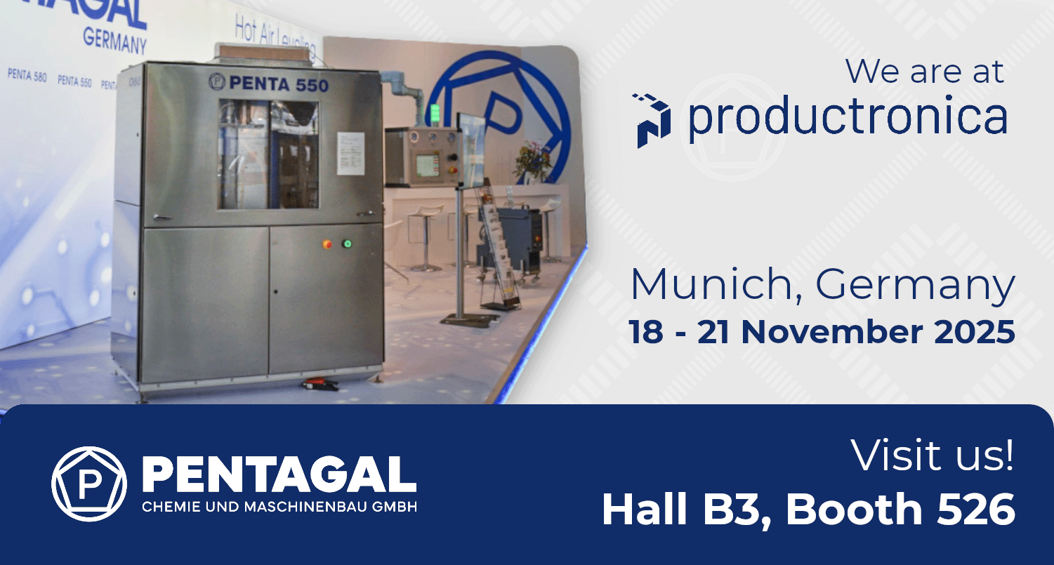 Our Hot Air Leveling Systems can also be found in large numbers in Asia, South America and Africa. With the manually operated models Penta 550 and Penta 580 as well as the only automatic vertical Hot Air Leveling System Penta Automatic, Pentagal has been setting worldwide standards in innovation, quality, environmental and user friendliness as well as sustainability for over 40 years. The product portfolio also includes all accessory systems for Hot Air Leveling, such as flux modules, cooling sections, air washers, flux and more.